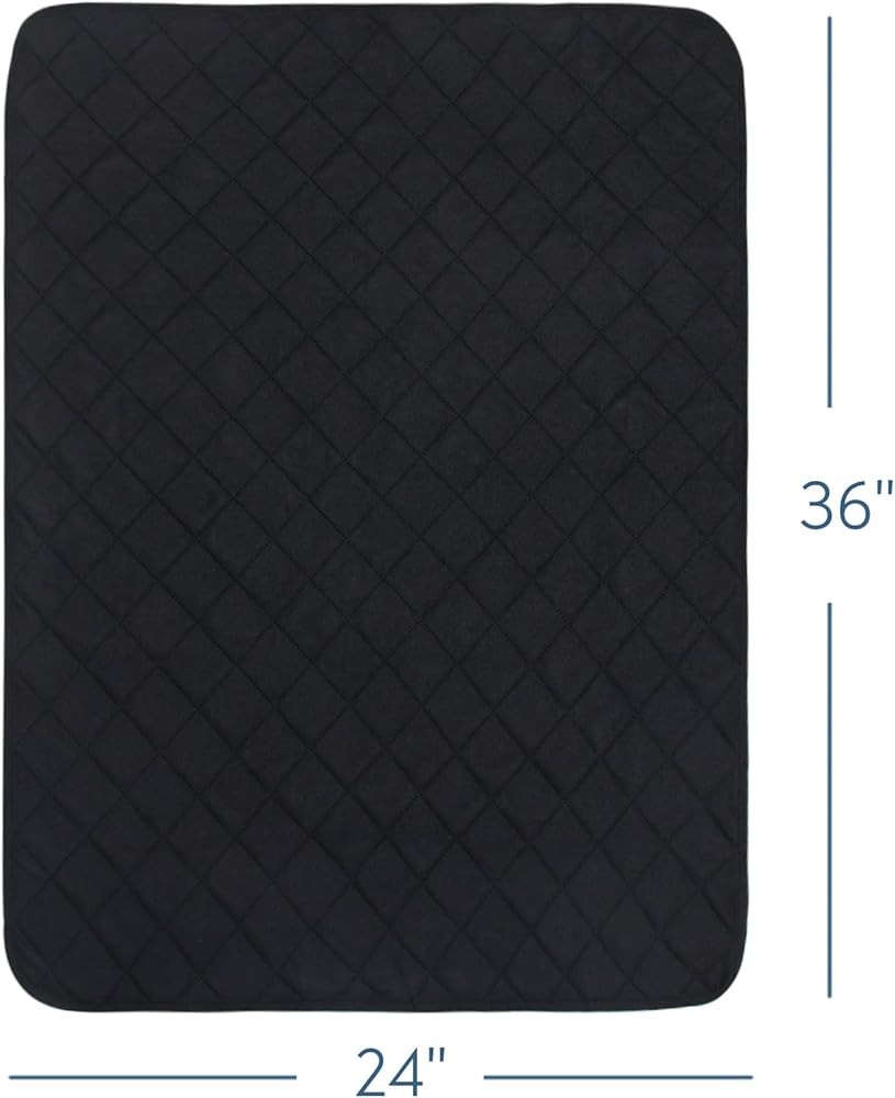 Washable Incontinence Bed Pads, Reusable Underpads for Kids, Adults, Elderly, Hospitals & Pets, Waterproof Bed Protector Pad for Bed, Sofa, Floor, Super Absorbent Bed Pee Pad 24" x 36"- Black