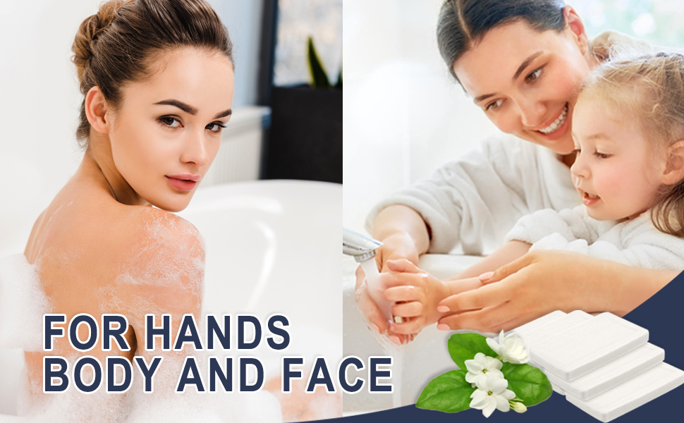 Lightweight and Portable: the size of each bar soap is about 2.3 x 1.4 in / 5.8 x 3.5cm, the thickness is about 0.2 inches/ 5 mm, and the weight is about 0.5 ounce/ 14 g