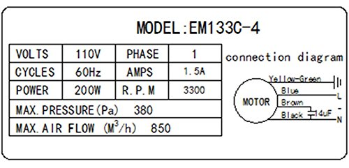 Hakka Centrifugal Blower, Rectangular Shaded Pole Specialty Blower with Flange, 500 CFM, 3300 RPM, 110V/60Hz, 1.5 amps