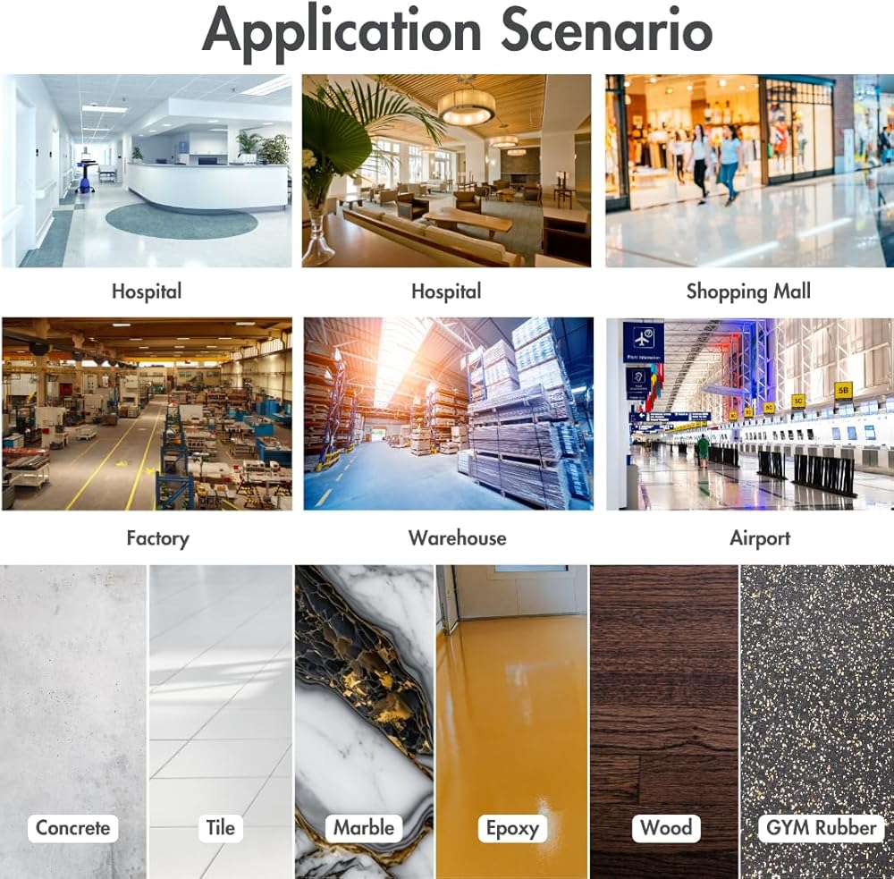 HIGH-PRODUCTIVITY CLEANING – 48,000 SQ.FT PER HOUR: This 22-inch ride-on floor scrubber dramatically increases cleaning efficiency, covering up to 48,000 sq.ft per hour. Ideal for warehouses, factories, gyms, airports, and large commercial spaces requiring fast and consistent cleaning.
