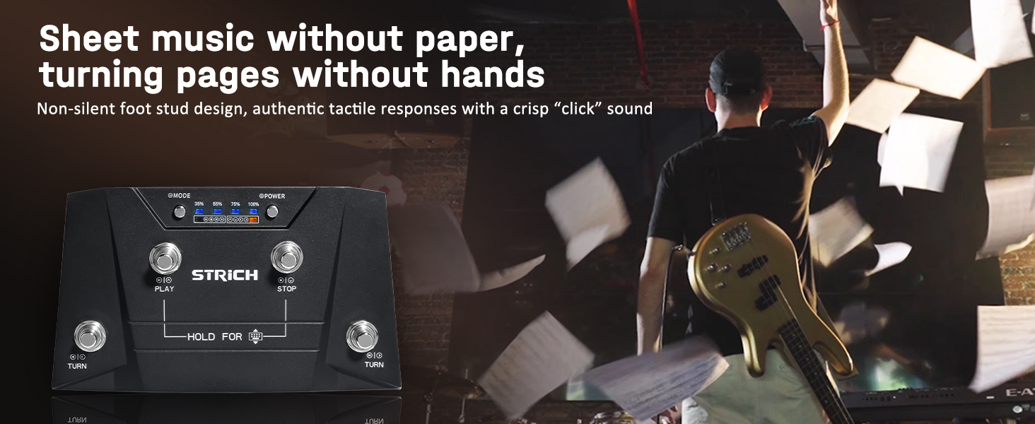 STRICH Wireless Page Turning Pedal 3.0 for Rock Musician, Compatible with Windows, Android, macOS HarmonyOS, with Type-C Charging Port, Supports for Tablets and Computers, Non-silent Pedal, SPT-30