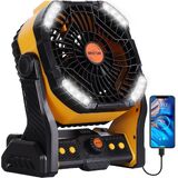 Camping fan 20000 mAh battery, camping accessories no need to plug in when using and fix the cords messing,as an emergency power source for the GPS or phone charging. Package include Type-C fast charging cable, and configured with 2 Warnlight and daylight for reminding you to charge in time, fully charged battery lasts up overnight, bringing you more lasting coolness.