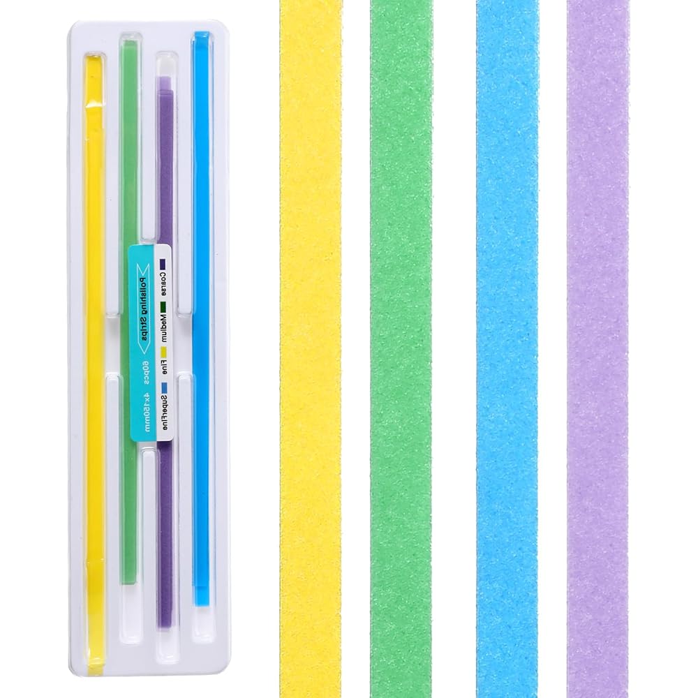 【Color Coding for Enhanced Efficiency】Dental polishing strips are available in four colors for specific tasks: purple for shaping, green for pre-polishing, yellow for smoothing, and blue for final polishing.