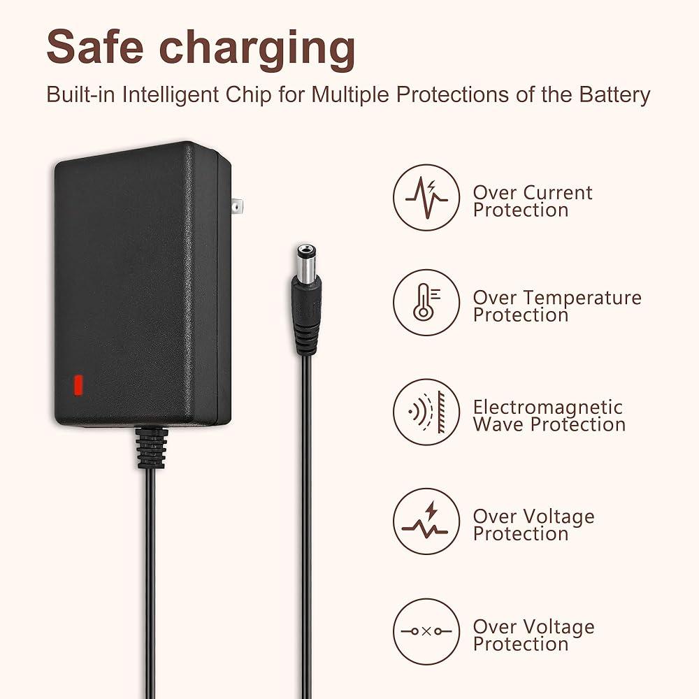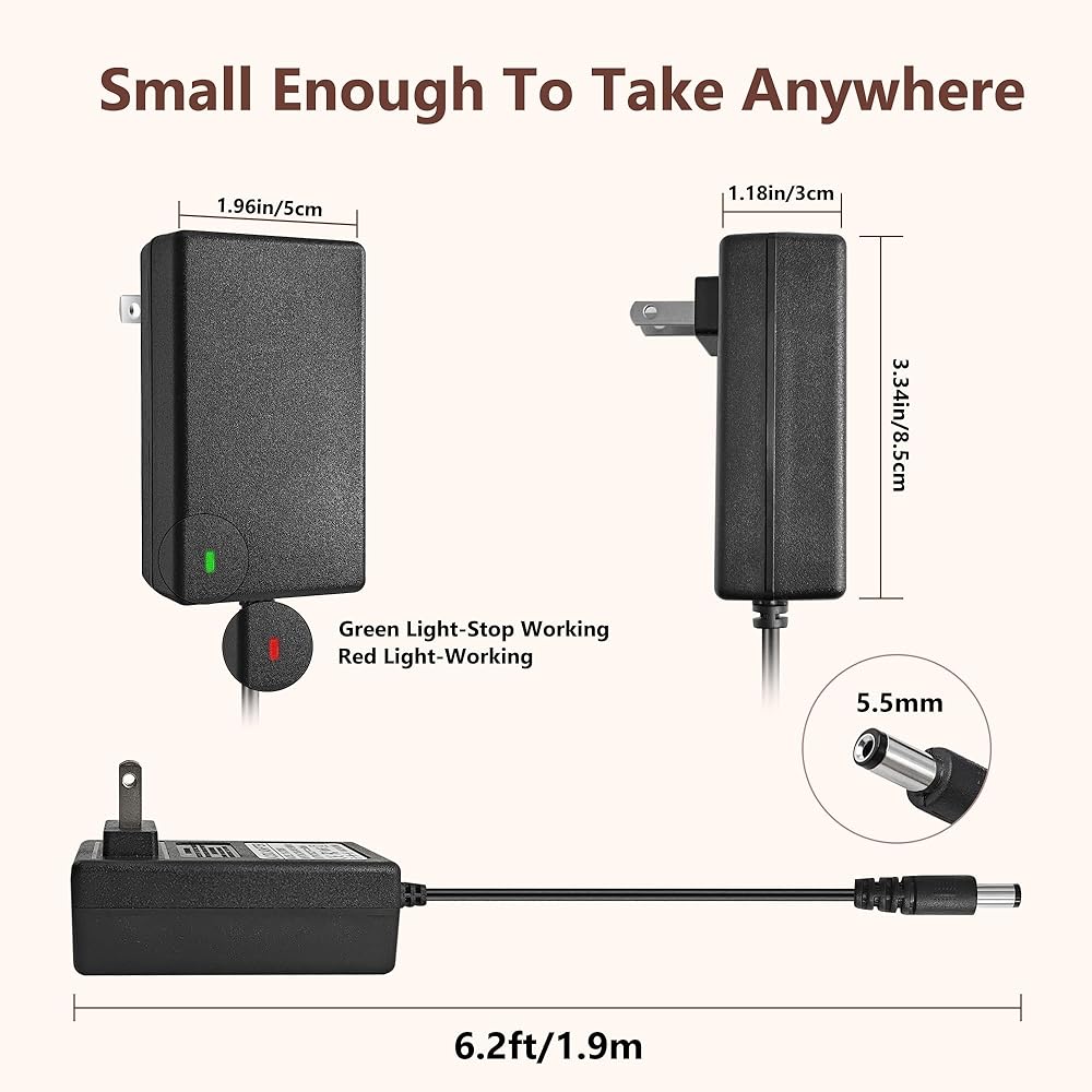 Charger Cable Length: 6.2 FT/190 CM Long Power Cord Allows Charging to be Unrestricted by the Power Board and Equipped with LED Charging Indicator Light, Easy to Determine Charging Status; Our Massage Gun Power Supply is Your Best Choice