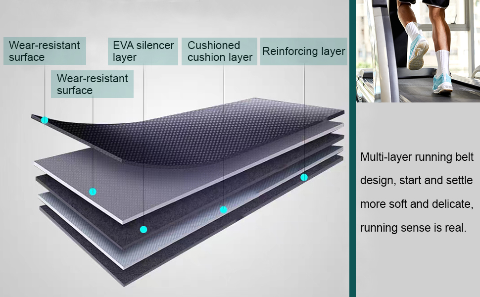 【MATERIAL QUALITY】- High quality PVC material, with a wear rate 20% lower than traditional materials. The texture is softer than other manufacturers' running belts, which can achieve better operation and reduce the failure rate of Treadmill due to excessive load.
