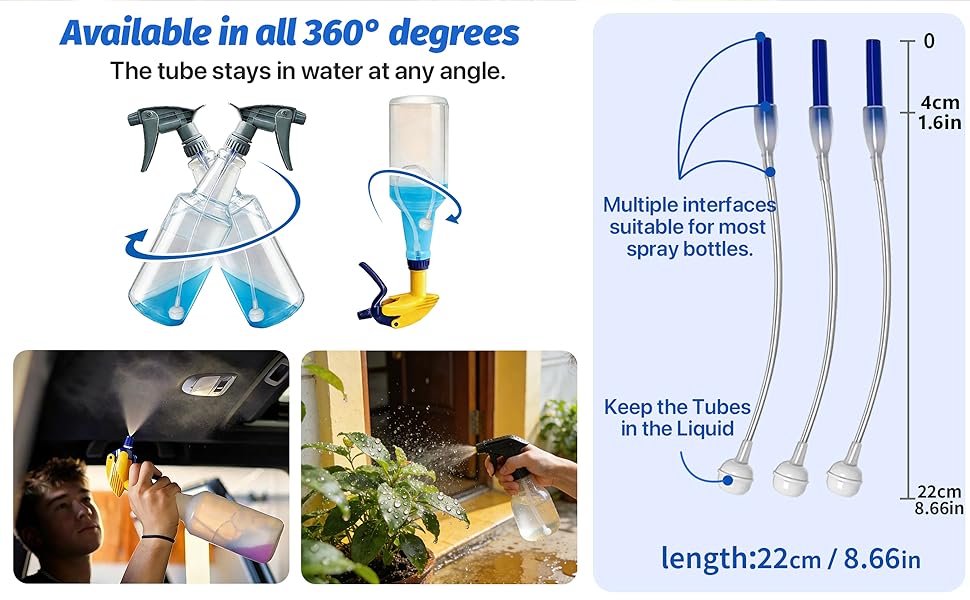 ✅ Industrial-Grade Corrosion-Resistant Material, Long-Lasting Durability Made of heavy-duty, chemical-resistant PET material, our tilted spray bottle adapter withstands harsh commercial degreasers, auto detailing chemicals, and industrial cleaners without cracking, fading, or deforming. The trim-to-fit tube works for all bottle sizes.