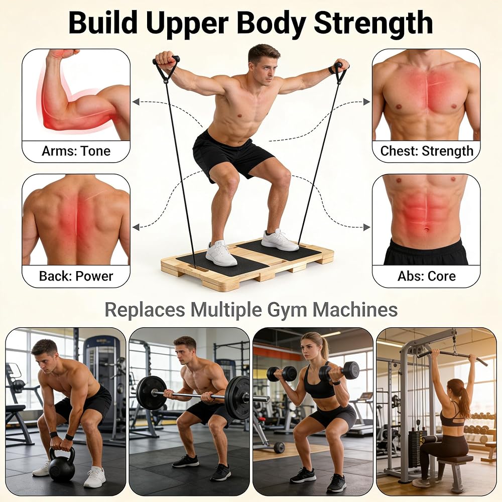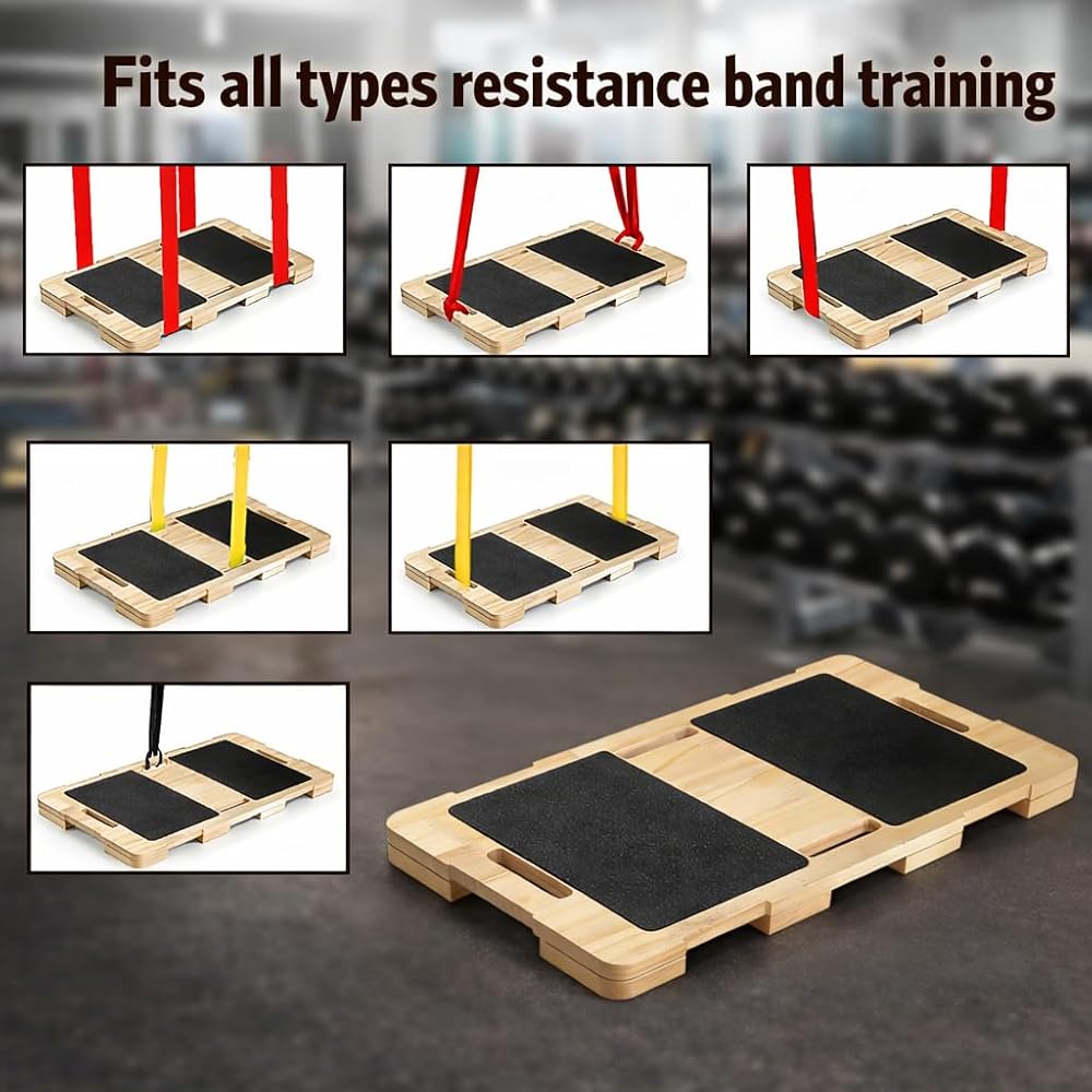 VERSATILE RESISTANCE TRAINING: Wood resistance band platform base designed for full-body workouts, allowing you to anchor resistance bands securely for exercises targeting arms, legs, chest, and core