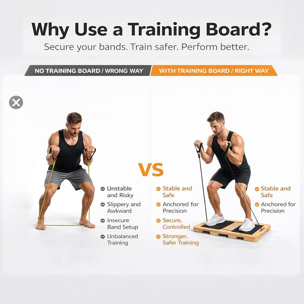 MULTI-FUNCTION EXERCISE BOARD: Functions as both a step platform and resistance band anchor point, maximizing workout variety for squats, lunges, rows, presses, and other resistance exercises