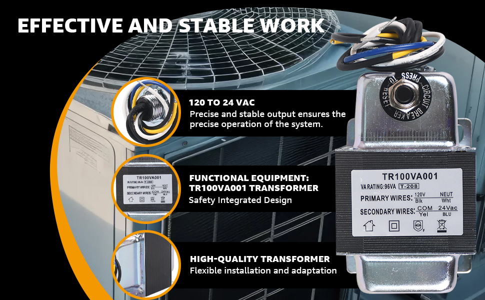 Precise Power Control: The 120V step-down transformer delivers a stable 24VA output, specifically designed to supply up to 24VA of power to various industrial equipment, including thermostats, relays, timers, and other control devices