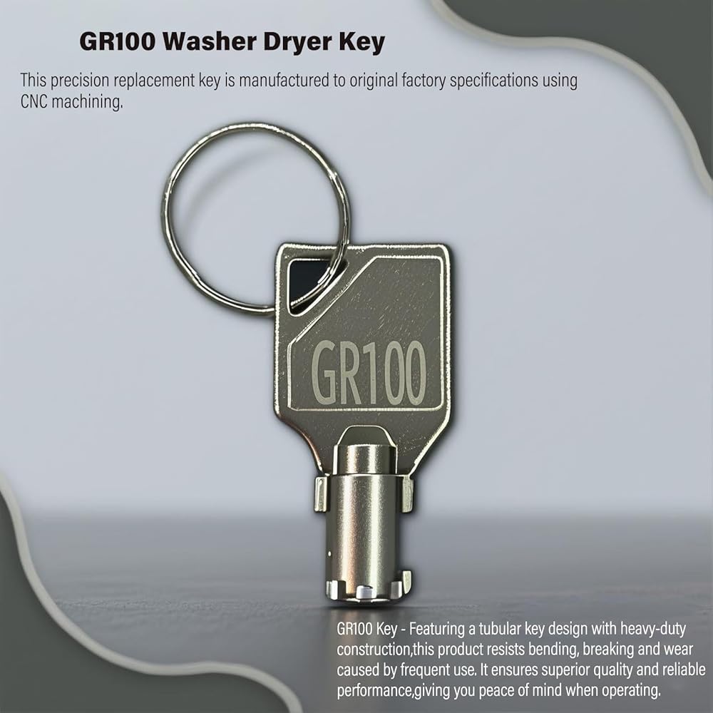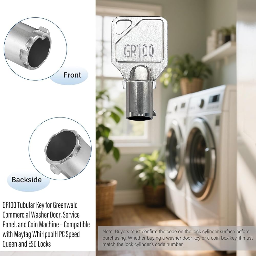Metal GR100 Tubular Laundry Key–Facility Maintenance Key for Commercial Laundry Equipment–Compatible with Speed Queen Maytag and Whirlpool Coin-Operated Washing Machines and Dryers.Made from high-quality hardened steel,it's built to last in high-traffic laundromats,apartment complexes and homes..