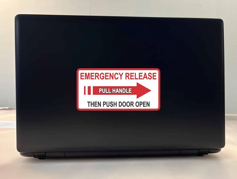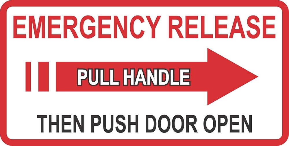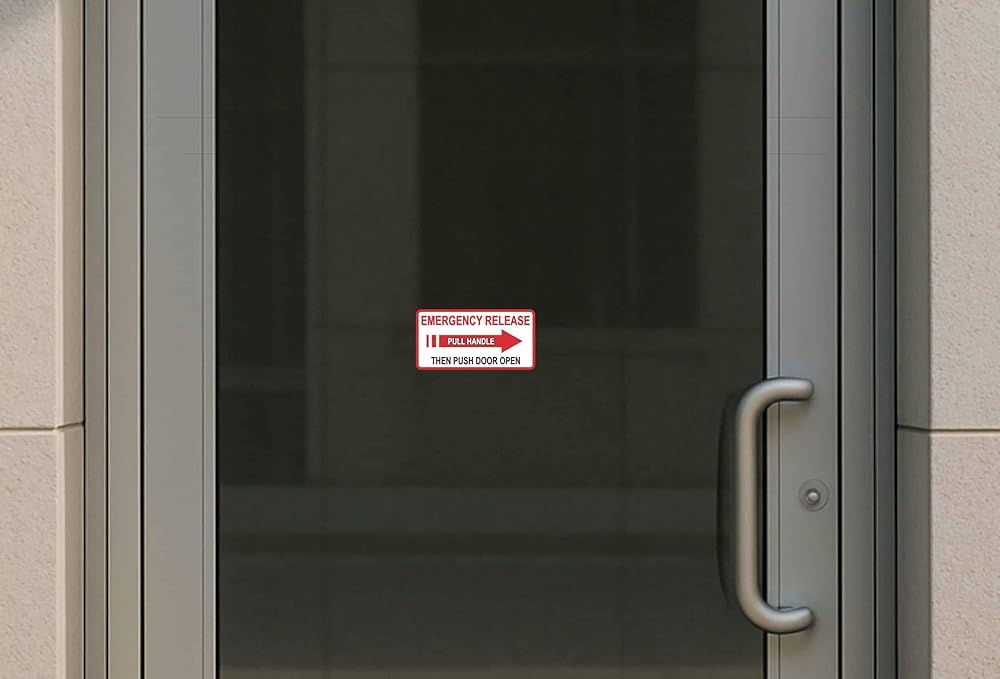 Measures 6 inches wide by 3 inches tall (152.4 mm x 76.2 mm) with clear emergency release instructions