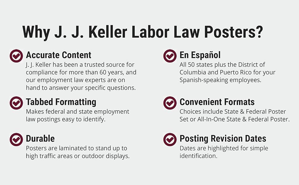 Labor law poster bundle includes the all-in-one state & federal poster. Laminated poster for durability and protection from being altered or defaced. Get the compliance guarantee you need to avoid posting fines!