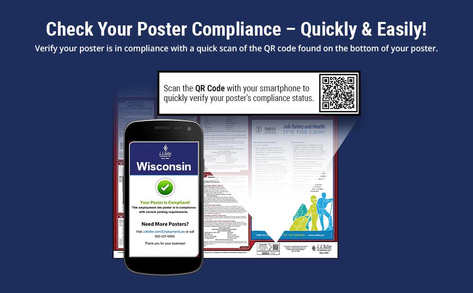 Tabbed formatting makes information easy to find and read. Posting revision dates are highlighted for simple identification. Features QR Code to verify labor poster compliance status with a quick scan.