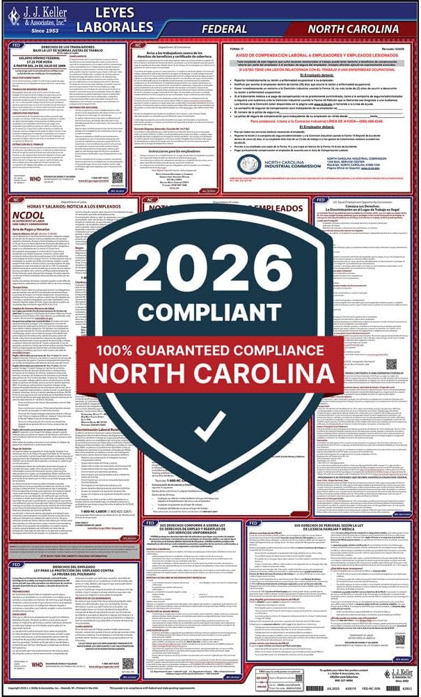 Get required federal and NC labor law notices including North Carolina minimum wage poster, North Carolina Occupational Safety & Health Protection (NCOSH), North Carolina workers' comp, FMLA poster, federal minimum wage poster, EPPA, EEO, USERRA and more.