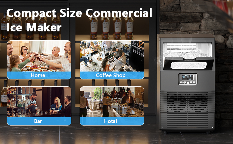 Quiet Operation & Effective Insulation: Designed for low-noise performance(≤55dBs), this ice maker commercial also includes an 0.8 inch insulation layer that significantly slows ice melt to maintain ice quality