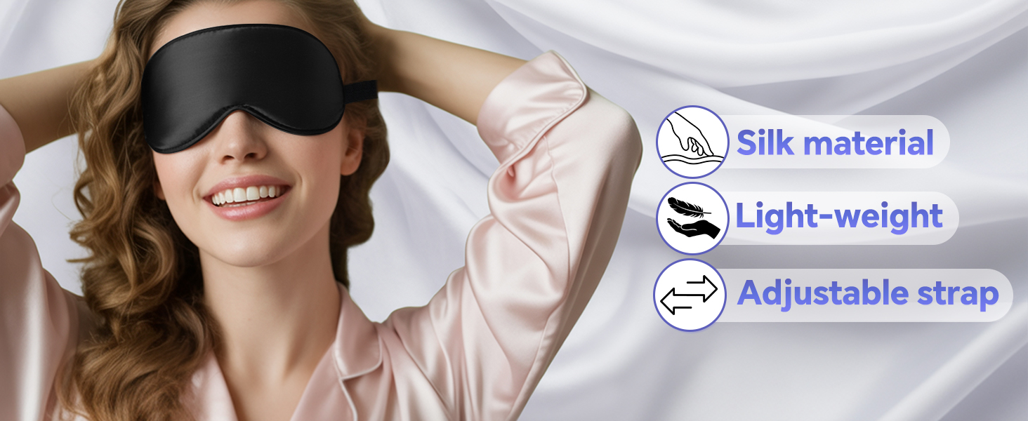 Ultra-Soft Silk for Sensitive Skin Comfort: Crafted from silk fabric, this sleep mask offers a smooth, gentle touch that's ideal for sensitive skin. The naturally soft texture helps reduce friction around the eyes, minimizing irritation and pressure during sleep.