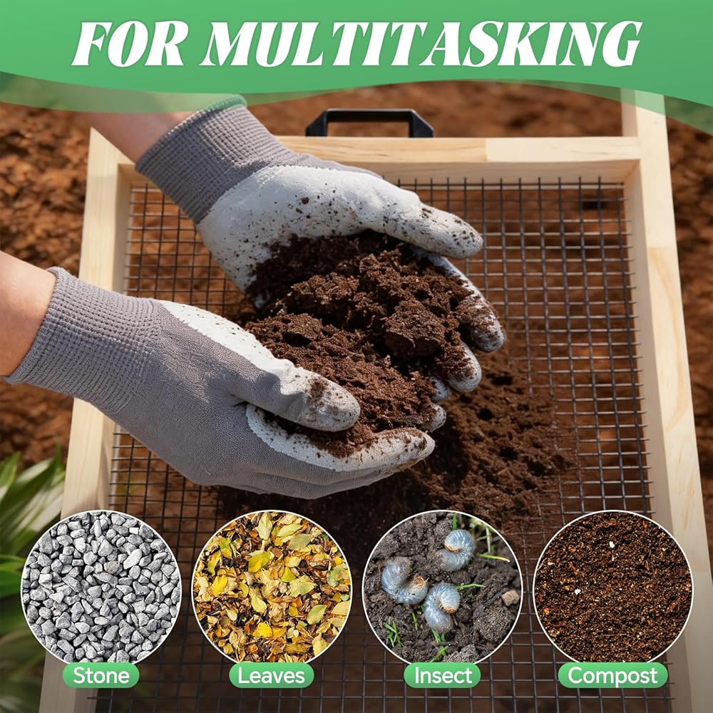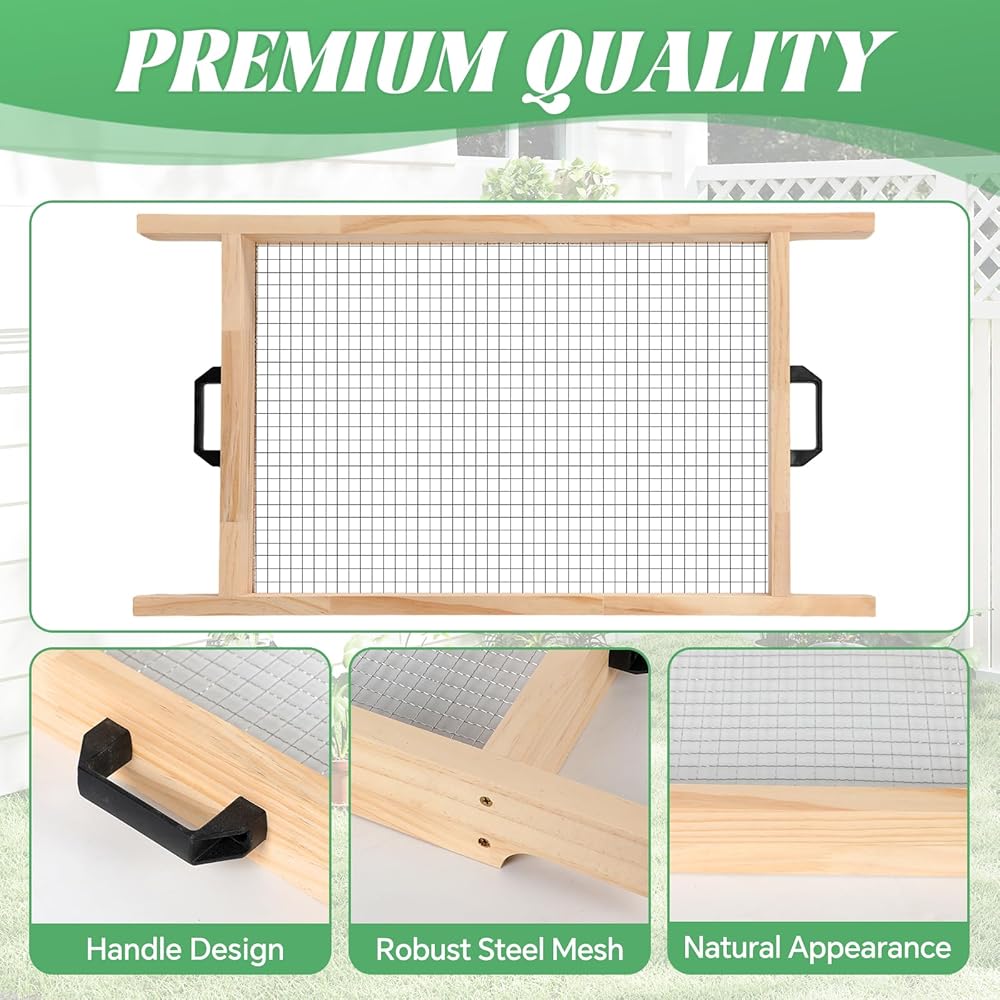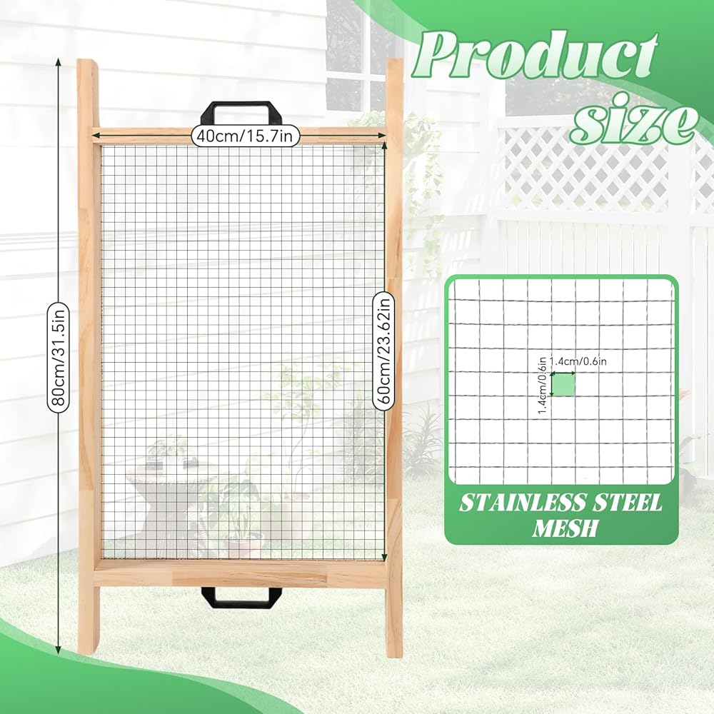 Constructed with a premium wooden frame and reinforced steel mesh, this soil sifter for the garden resists damage and deformation. Its sturdy structure withstands outdoor use and effectively removes large rocks from soil. You can rely on it for long-term, dependable performance