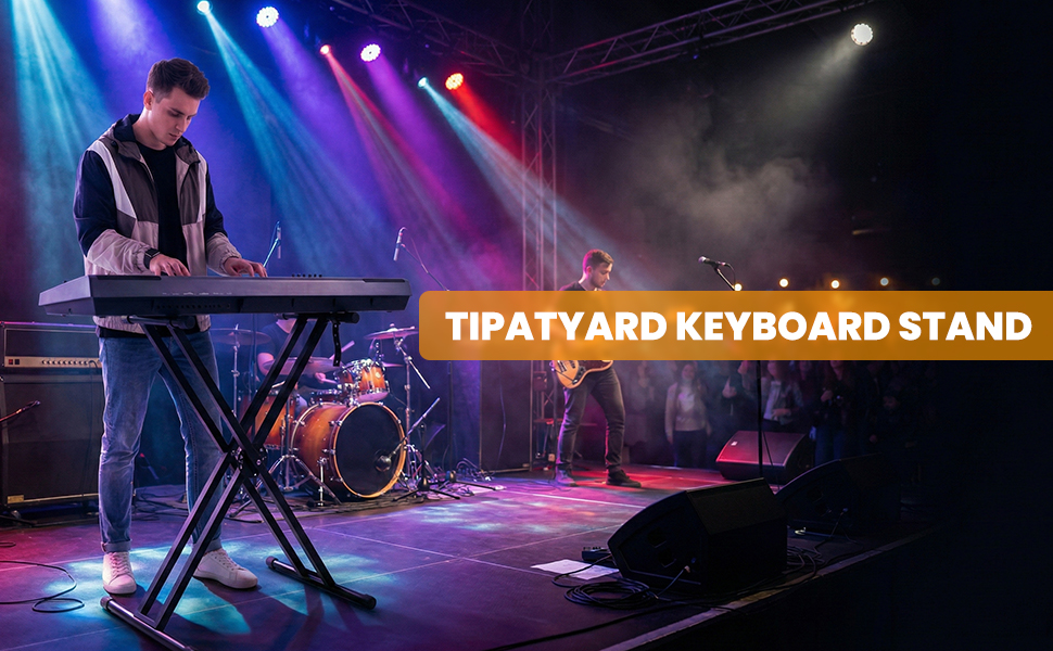 Adjustable Height in Seconds: Featuring 7 adjustable height settings from 11.8" to 38.6", The tipatyard keyboard stand helps you quickly find your perfect playing position. Just pull the center knob to smoothly raise or lower the stand—whether you prefer sitting or standing, switching setups is fast and effortless.