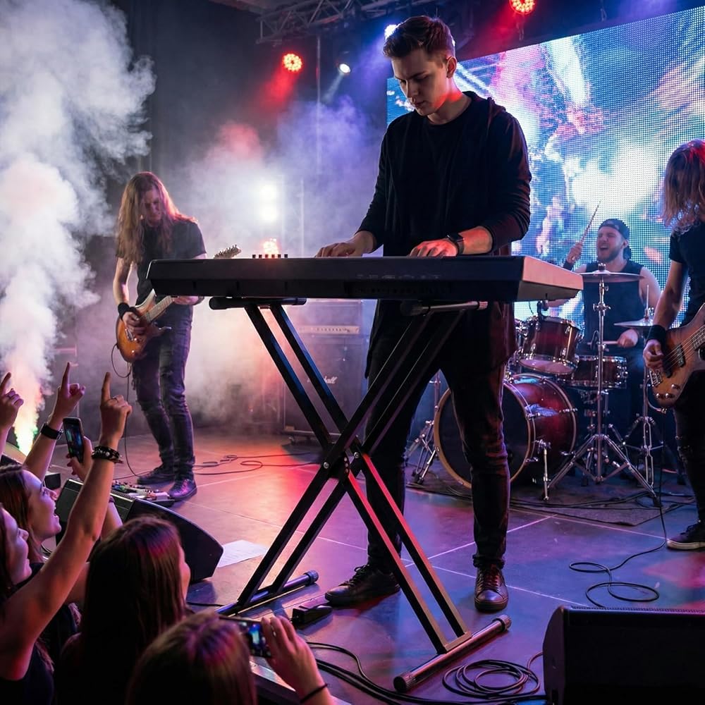 Versatile for Any Musical Setting: Perfect for home studios, music lessons, live performances, band practice, or DJ sets—this stand adapts to any scene. It securely holds 61-key, 76-key, and 88-key keyboards, making it a reliable choice for beginners, hobbyists, and professionals alike.