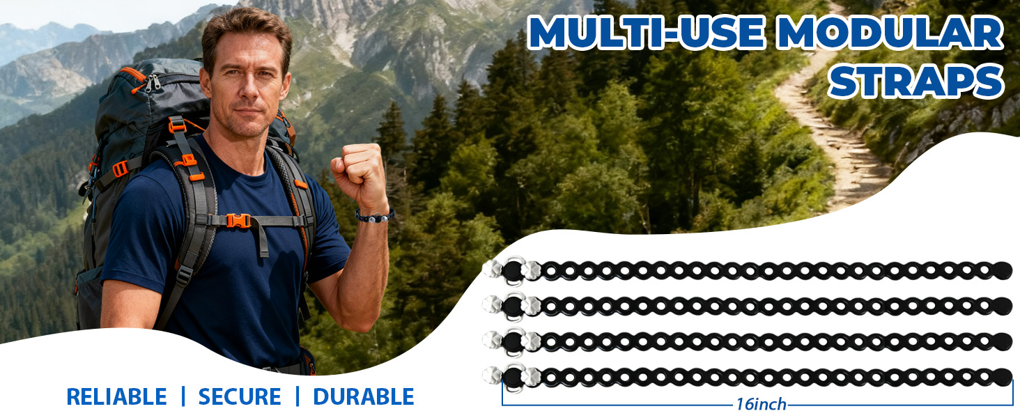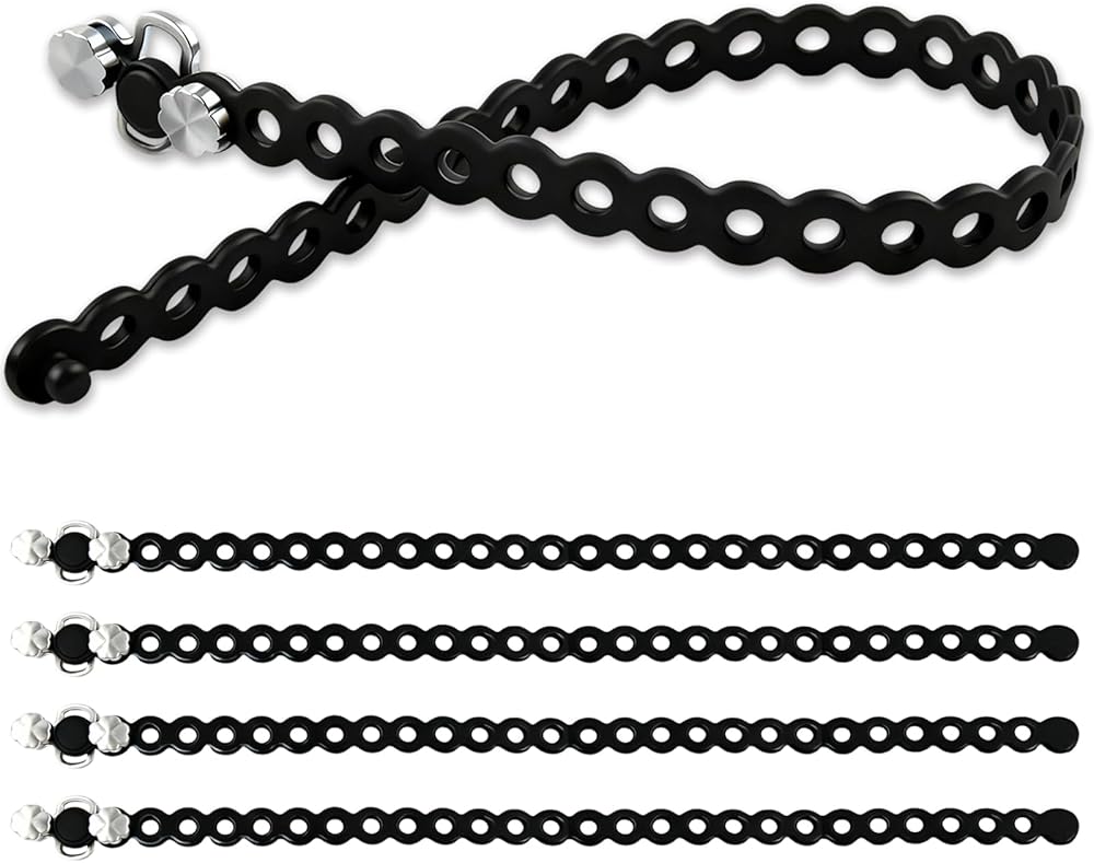 Modular Straps (4-Pack), Heavy Duty Silicone Gear Tie, EDC Multi-Tool Strap for Camping, Travel & Outdoor Survival(Black)