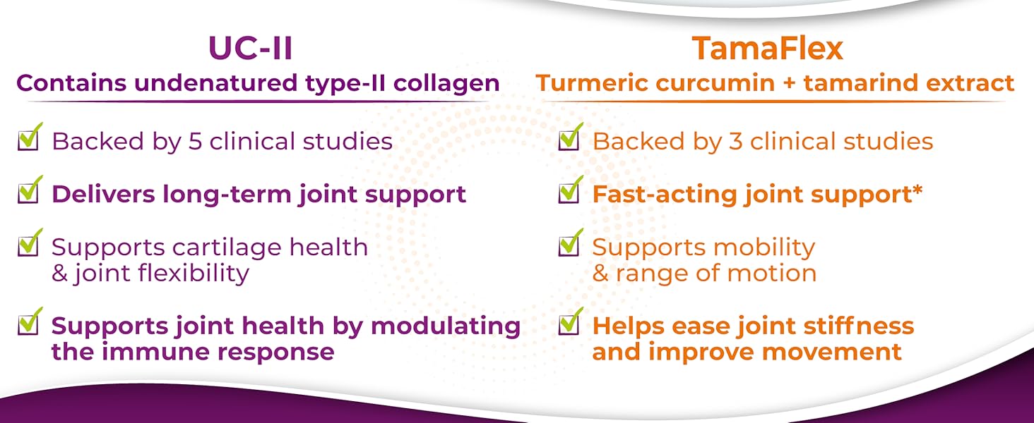 *Based on clinical studies of UC-II and TamaFlex ingredients. Individual results may vary.