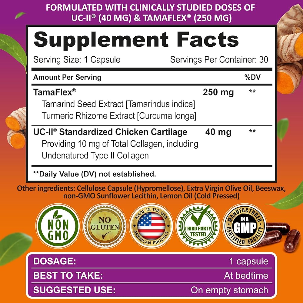 Joint Support Supplement with UC-II® & TamaFlex® – Undenatured Type II Collagen, Turmeric & Tamarind for Joint Health, Flexibility & Mobility – Natural Cartilage Support – Glucosamine-Free Capsules