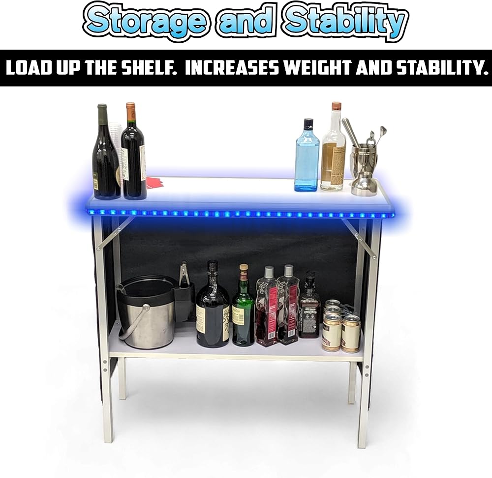 Folding Portable Bar w/LED Lights, Wireless Remote, 2 Bar Skirts, Storage Shelf, & Carrying Case - Football