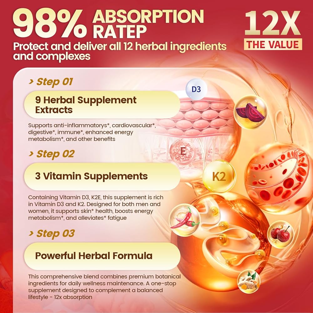 【Softgels with Cayenne Pepper 12-in-1】 A powerful blend of time-tested herbs and vitamins like Ceylon cinnamon organic, hawthorn berry supplement, beets, turmeric supplement, vitamin D3 + K2、vitaminE supplement, Grape Seed Oil, ginseng supplement, and berberine with Ceylon cinnamon. These vegetarian Softgels provide a concentrated botanical formula that supports daily wellness and overall balance for optimal wellness