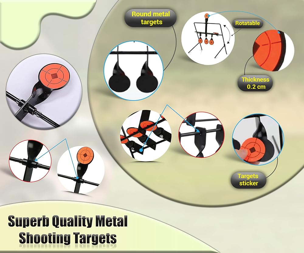 Durable Steel Construction for Repeated Impact: Crafted from high-strength steel, this metal target for shooting is built to withstand frequent use. Designed to handle repeated shots from .177 and .22 caliber projectiles, the solid frame of this airsoft target resists deformation, making it perfect for daily training or backyard plinking with air-powered shooting gear.
