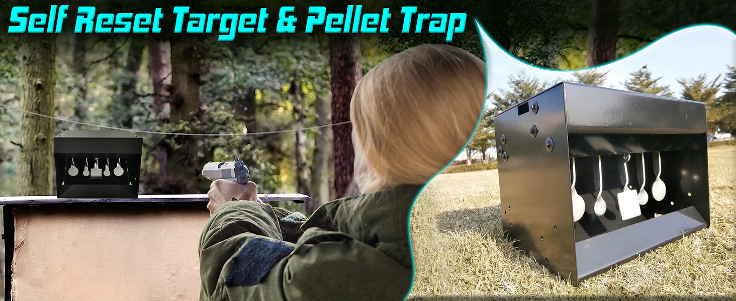 Resetting Center Target for Convenience: This pellet trap features a built-in resetting mechanism that lets you instantly reset the target with a direct center hit. This design ensures uninterrupted shooting sessions, saves time, and allows users to focus on improving accuracy.