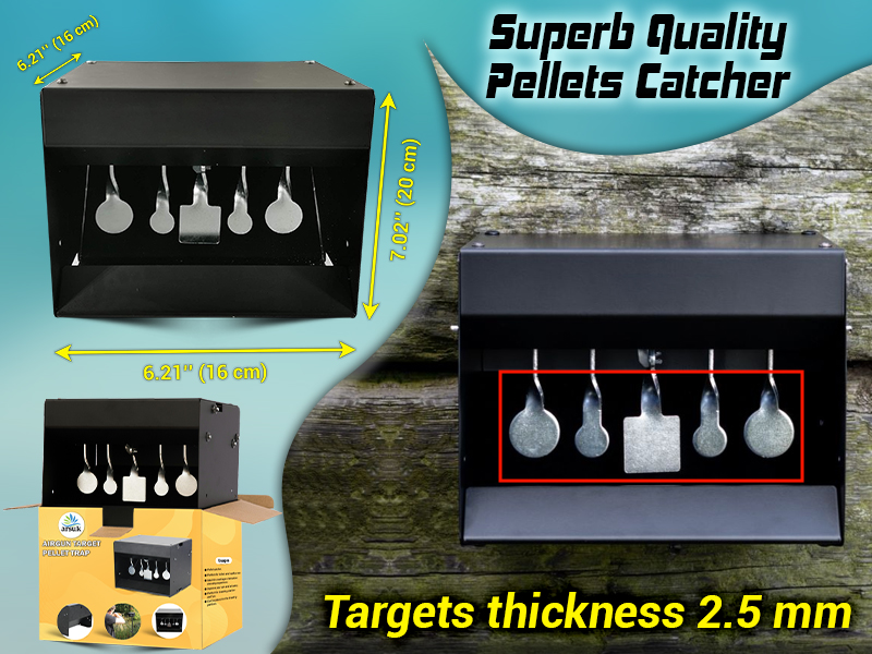 Safe Pellet and BB Catcher: The integrated pellet trap securely captures pellets and BBs, minimizing ricochets and keeping your space tidy. A perfect solution for both indoor setups and outdoor areas, making your shooting practice safer and cleaner.