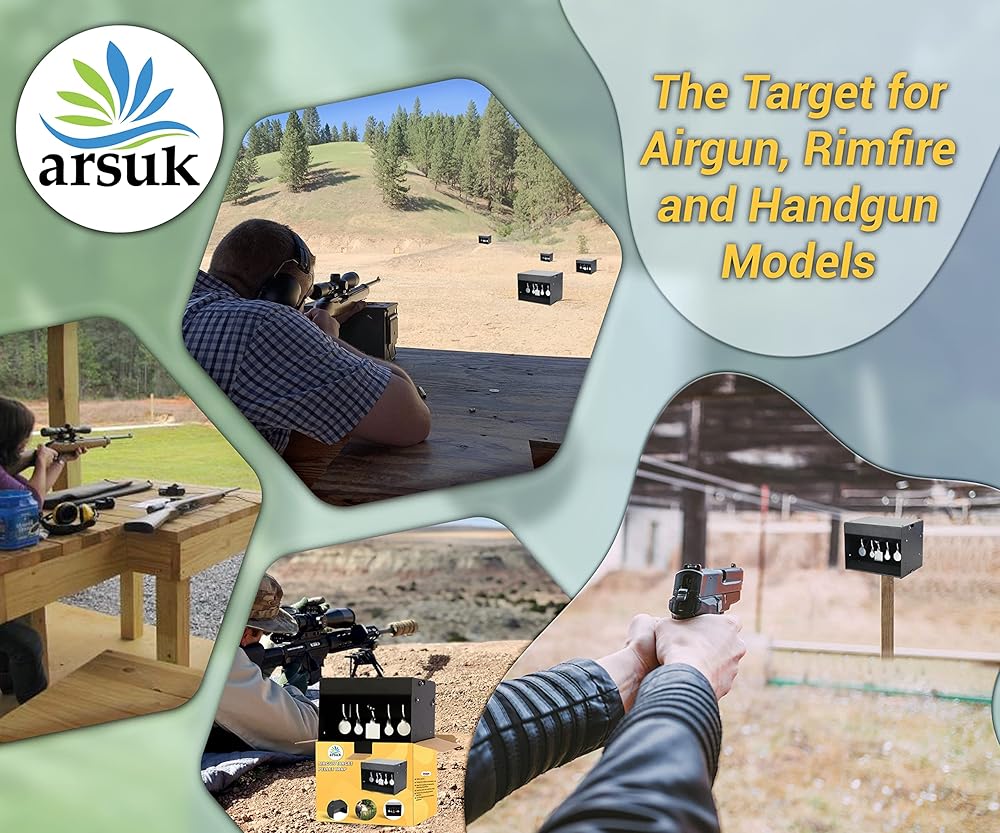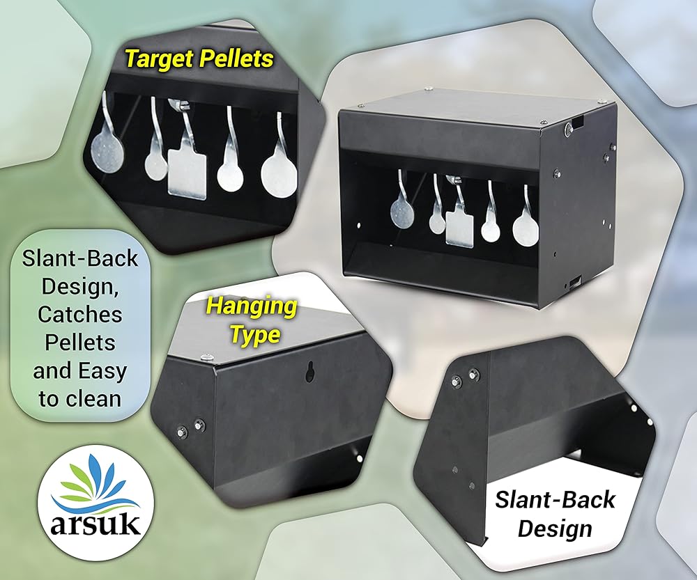 ARSUK Pellet Gun Target Trap with Resetting Center Shot – Metal Bullet Trap for BB Guns, Pellet Guns, and Airsoft – 7x6.2x6.2 Inch Pellet Target Trap for Indoor & Outdoor Shooting Practice