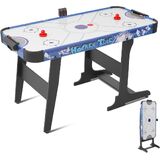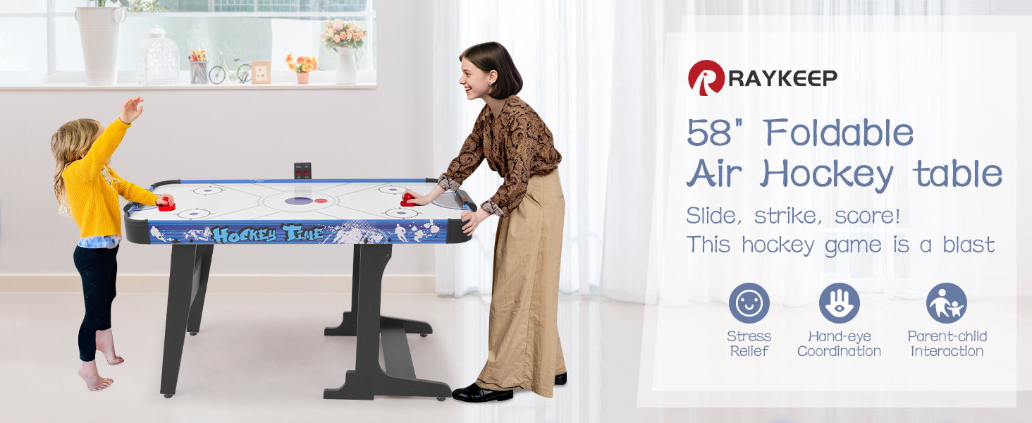 【Foldable Design for Easy Storage】Engineered with a simple folding mechanism, our air hockey table can be effortlessly stored in any corner, maximizing your space. This compact design is ideal for homes and game rooms where space is premium. The set includes 2 pushers and 2 pucks, making it ready for an exciting 2-player game that both kids and adults will love.