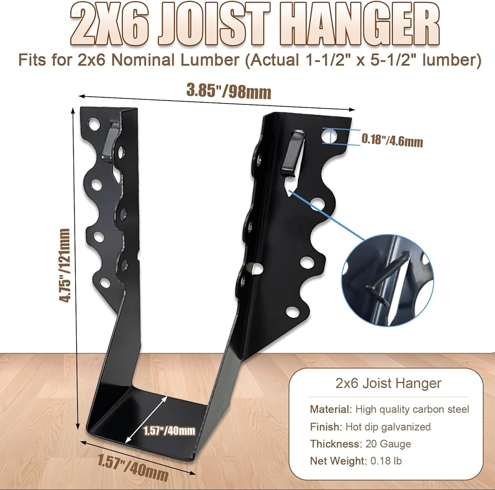 【2x6 Joist Hanger】 For nominal lumber 2 x 6 (actual size 1-1/2″ X 4-1/2″)