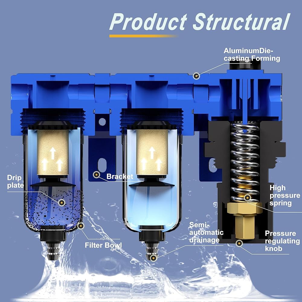 【Two-in-One Filter Element】these components efficiently remove moisture, particles, and oil, greatly enhancing your pneumatic equipment's longevity and filtration efficiency.