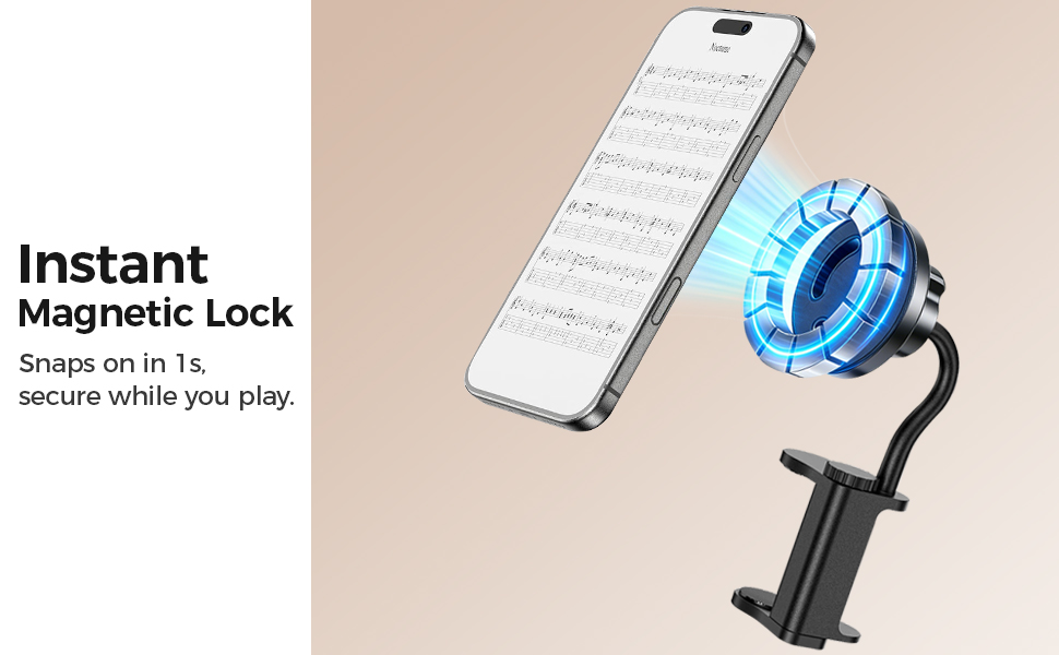 360° Rotatable Viewing: The flexible ball-joint design allows you to swivel your phone to any angle instantly. Switch effortlessly between Portrait mode for scrolling through lyrics and chord apps, or Landscape mode for watching tutorials and recording videos, maintaining a comfortable posture while you are playing.