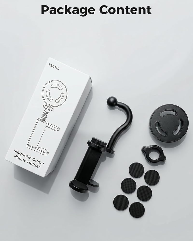 Ideal Practice Companion: Transform your phone into a hands-free assistant for daily practice and content creation. This guitar phone mount is perfect for reading digital tabs, lyrics, or tutorial content. Lightweight and compact, it easily fits into your gig bag, making it an excellent gift for guitarists of all levels. (Not compatible with left-handed players)