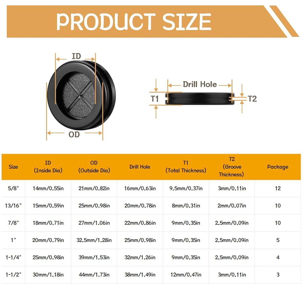 MATERIAL:Cable grommet made of quality, flexible rubber, it has good resistance, corrosion resistance, high temperature resistance and is not easy to wear