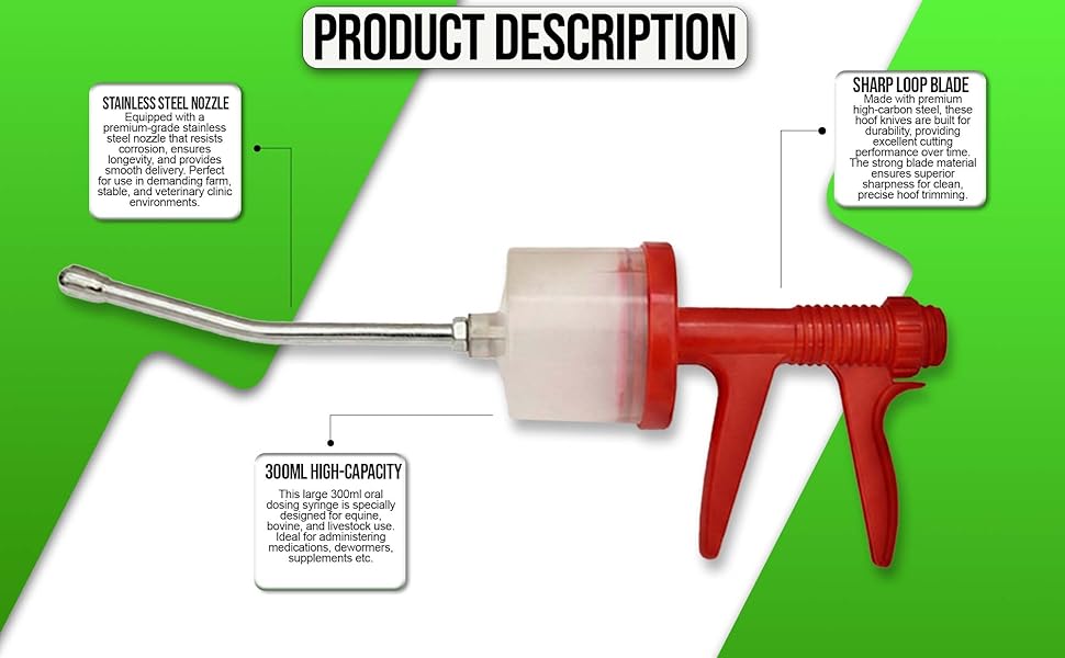 ✅ ERGONOMIC PISTOL GRIP HANDLE – COMFORTABLE, NON-SLIP DESIGN The ergonomic pistol-style handle ensures a firm, comfortable grip during repeated use. Reduces hand strain, enhances control and precision while dosing horses, cows, or other livestock. Excellent for veterinary professionals, farmers, and equine dental care specialists.