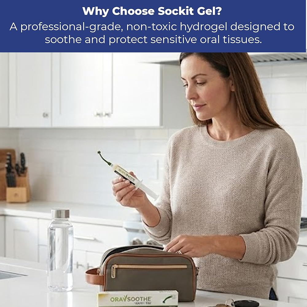 DDM International Sockit Hydrogel Oral Wound Dressing – 10g Single Applicator Syringe – Drug-Free, Natural Hydrogel for Oral Care & Comfort – Includes Instructions