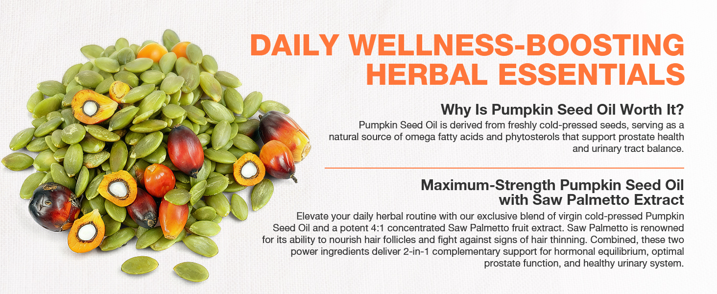 【زيت بذور اليقطين لنمو الشعر】زيت بذور اليقطين لنمو الشعر يلتقي بالميتو المنشاري في هذه الكبسولات! يعمل البلميط المنشاري المركز بنسبة 4:1 على تعزيز الامتصاص وتغذية البصيلات وتقليل التساقط وتقوية الشعر - وهو دعم طبيعي للرجال والنساء.