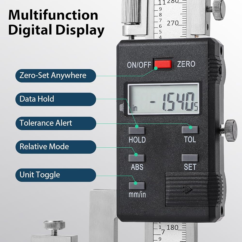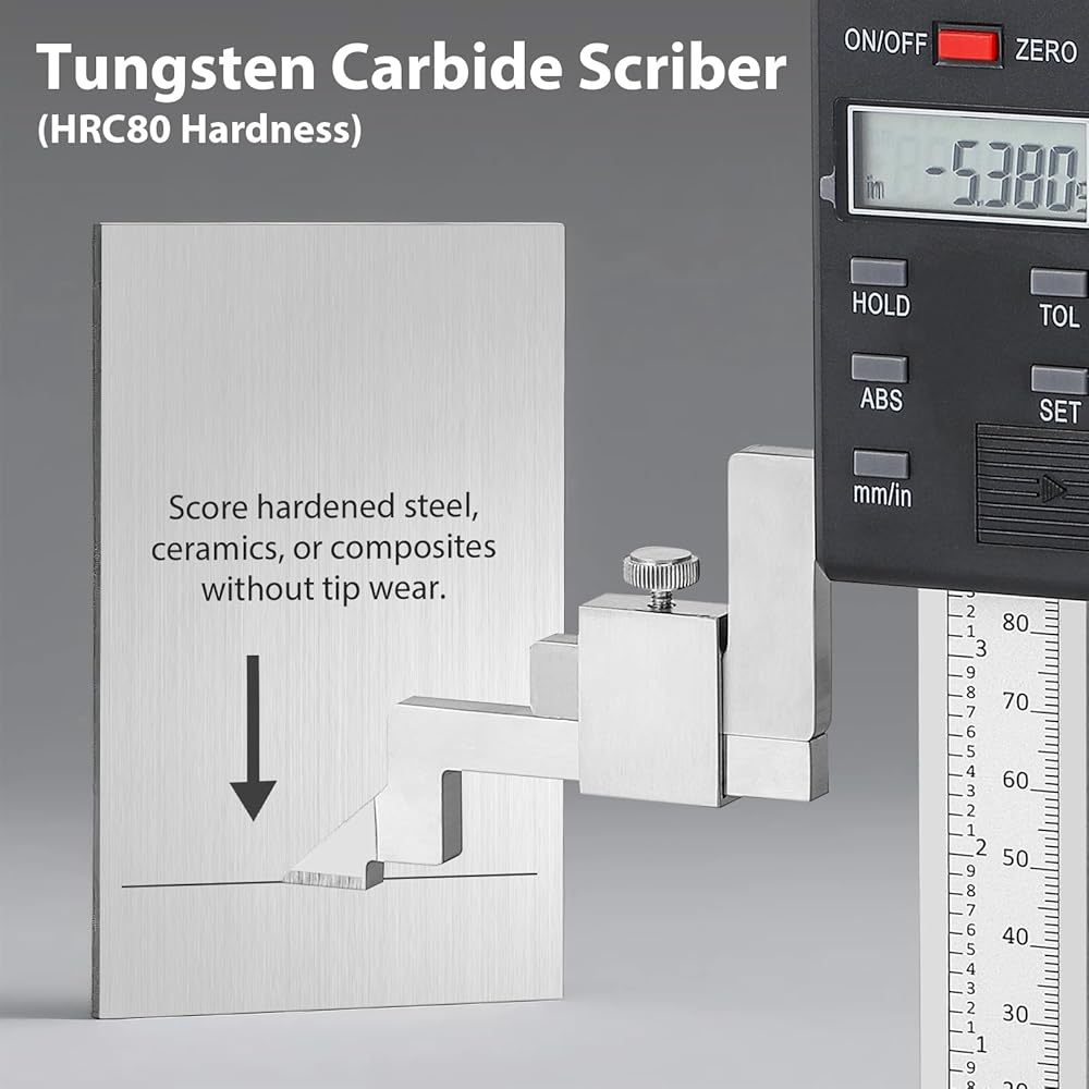 Precise Micro-Adjustment & Versatile Setup -- Achieve smooth, fine adjustments effortlessly. Features a convenient micro-fine adjustment wheel for pinpoint positioning. The standard carbide scribe tip is easily replaceable and compatible with dial test indicators (sold separately) for expanded functionality.