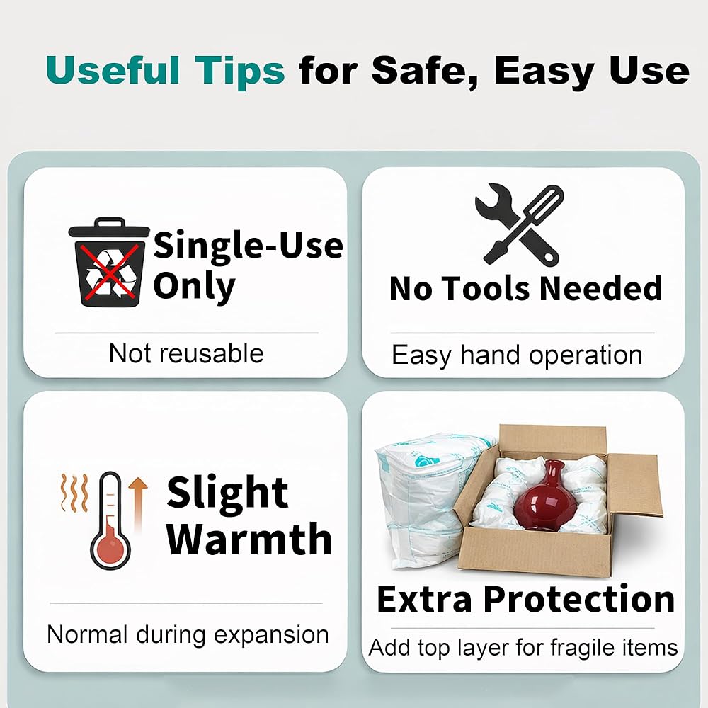 Easy Hand-Activated Design – No tools required; simply squeeze, rub, and pat to activate. Quick expansion allows fast, efficient packing for busy sellers, warehouses, and movers.