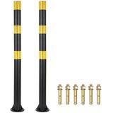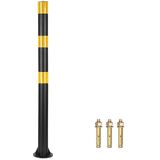 Aifiuroo 32" Safety Bollard Post, Black Steel Parking Post with Reflective Tape, 2" Diameter Heavy Duty Barrier Post with 3 Anchor Bolts for Driveways, Parking Lots, Sidewalks & Traffic Control