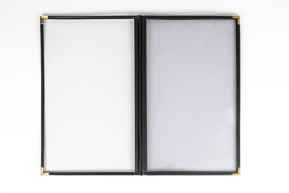 - Well-made BLACK leatherette edging and GOLD metal corners are very durable, could protect menu in a good condition.
