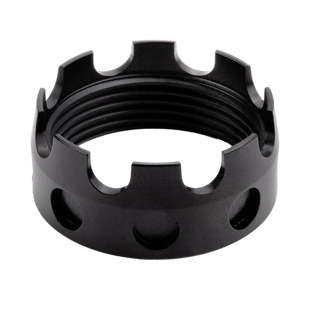 Precision-engineered from high-strength Aluminum 7075-T6, this black castle nut features a 1-3/16 inch diameter with 16 threads per inch (TPI). The distinctive castellated design allows for secure locking with a cotter pin, making it ideal for critical applications where vibration resistance is essential. The lightweight yet durable aluminum construction offers excellent strength-to-weight ratio while resisting corrosion. The black finish adds a sleek, professional appearance while providing additional surface protection. This castle nut is perfect for automotive, machinery, and heavy equipment applications where reliable fastening is crucial. The 16 TPI threading ensures smooth installation and proper load distribution. Please verify compatibility with your specific application before purchase.