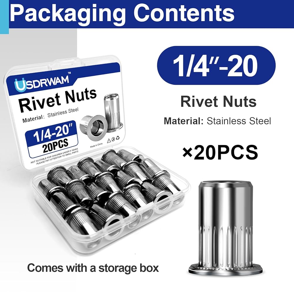 Creates Reliable Threaded Points: This 1/4-20 rivet nut is designed to form a permanent, strong internal thread in sheet metal, panels, or tubing where only one side is accessible, functioning as a robust threaded rivet.