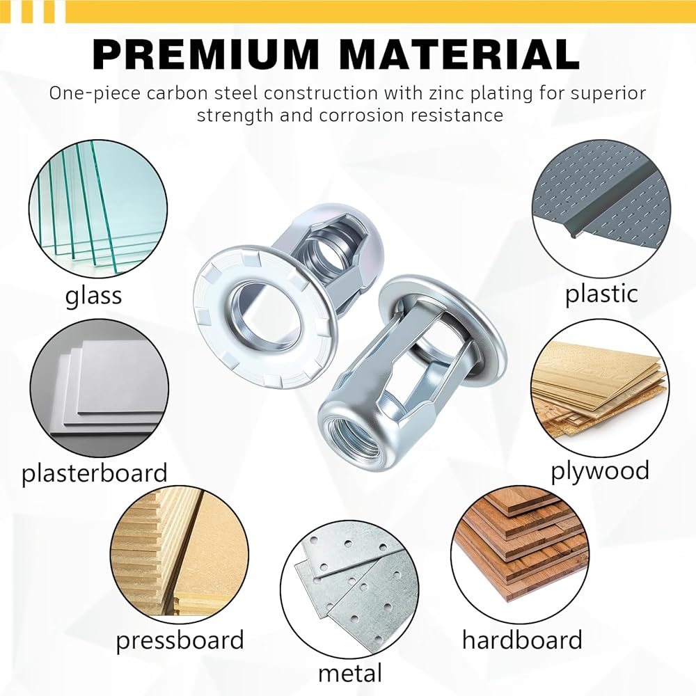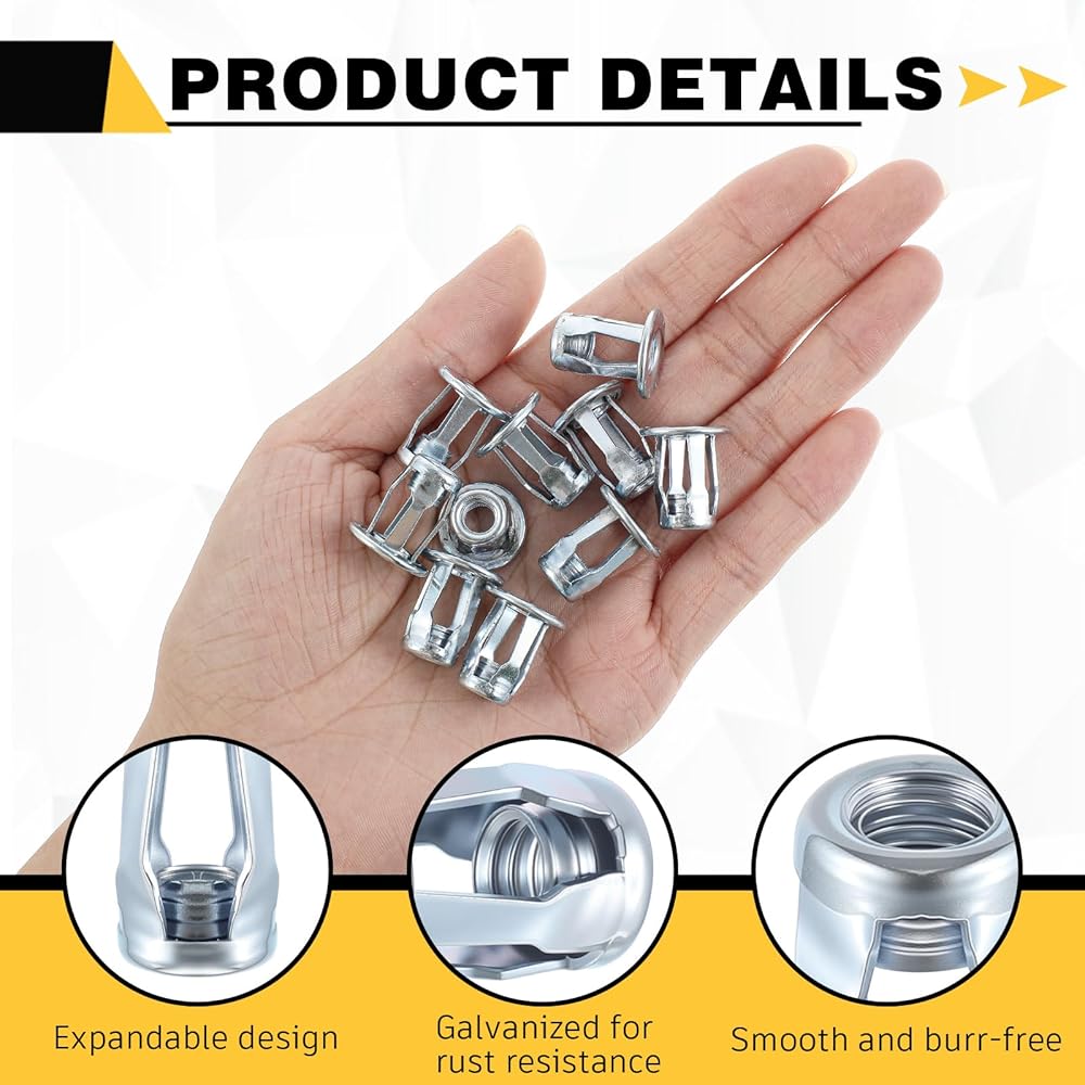 Nice Material: our product is crafted from quality carbon steel, ensuring robustness, durability, and resistance to corrosion and rust; These threaded inserts for metal and plastic, including jack nuts and 1/4-20 jack nuts, promise a long-lasting solution for your fastening needs