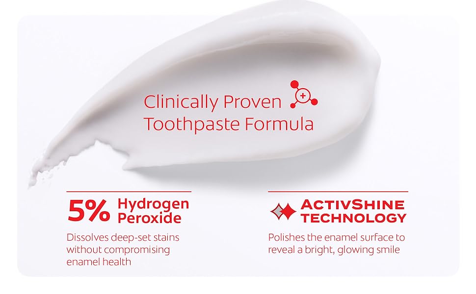 ACTIVSHINE TECHNOLOGY: This whitening toothpaste pack polishes the enamel surface and reflects light to reveal a next-level shine
