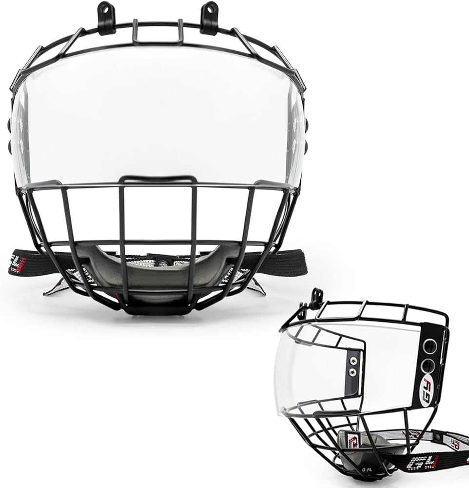 GY Hockey Helmet Cage & Face Shield Protector Combo ( Junior ) 1.Made of durable steel cage wires and polycarbonate shield 2.Expanded visual area for excellent visibility 3.Strategic ventilation holes for maximum breathability 4.Inside Anti-Fog, Outside Anti-Scratch treatment 5.Floating Chin-Cup. Ensure a secure and proper fit 6.Mounting equipment included. Compatible with most certified hockey helmets